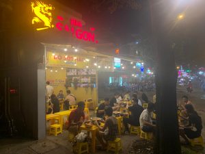 Dien Bien Phu通りに面した超ローカル、プラ椅子仕様の路面店。