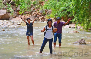 スニーカーのまま川へ入ることに!