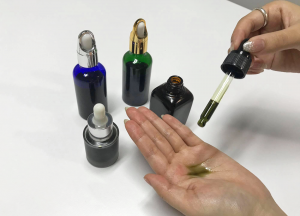 【 c o i 】のタマヌオイル原液はどろっとした濃い緑色。