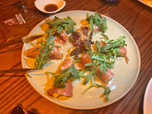 自家製パテに、サーモンのマリネ、茄子のカルパッチョ